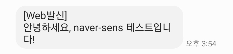 naver-sens를 통해 문자를 보내는 예시는 아래와 같습니다.