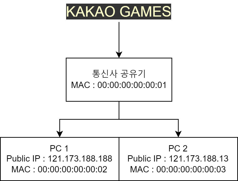 사설 IP는 우리 공유기가 판단하는 용도지, 카카오게임즈에겐 'PC 1'이 요청하건 'PC 2'가 요청하건 동일한 IP로부터의 요청이라 판단합니다.